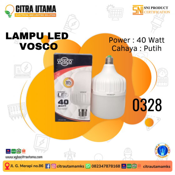 "Menerangi setiap sudut dengan cemerlangnya lampu LED Vosco 40 watt. Terangi ruangan Anda dengan efisiensi ramah lingkungan dan kejernihan yang memukau.