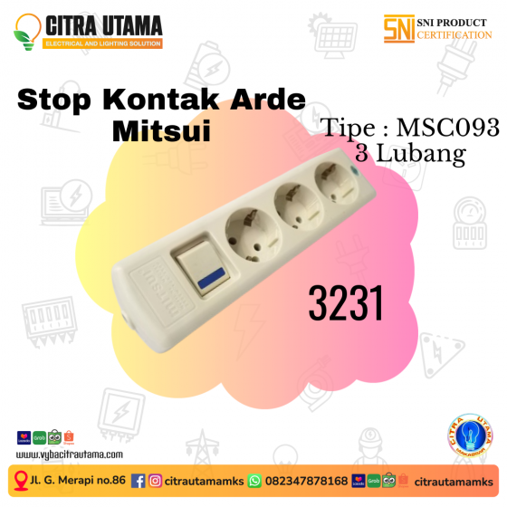 "Transformasi keamanan listrik moderen Dengan tambahan saklar pada Stop Kontak Arde Mitsui, nikmati kendali penuh dan perlindungan optimal