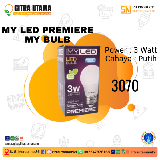 "My LED Premiere 3 Watt Penyempurna suasana yang sempurna! Cahaya hemat energi dengan desain yang elegan.