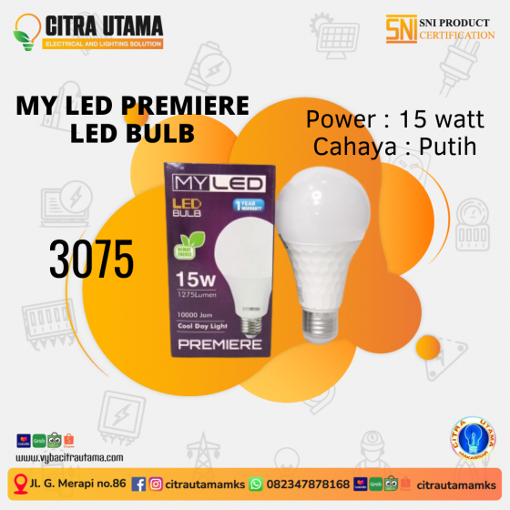 "Penerangan yang sempurna dengan Lampu LED Premiere 15 Watt - Mencerahkan ruangan Anda dengan kehangatan dan efisiensi yang luar biasa!