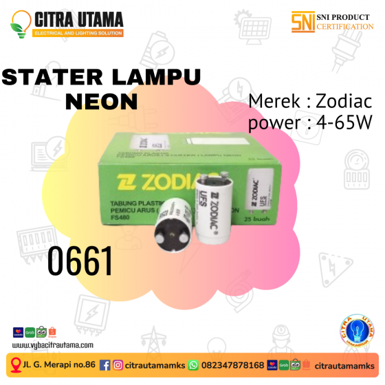 stater untuk menyalurkan listrik dari sumber ke lampu TL neon Penutup luar terbuat dari berwarna putih dan titik kontak kuningan.
