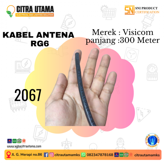 Kabel antena RG6 adalah jenis kabel yang sering digunakan untuk menghubungkan antena tv atau satelit ke receiver. Kabel RG6 Visicom Tembaga asli