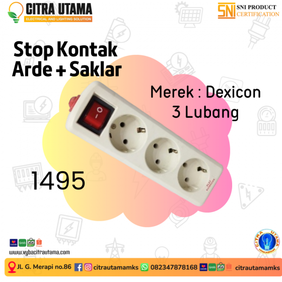 "Inovasi terkini dalam listrik domestik Stop kontak arde + saklar 3Lubang Dexicon menghadirkan perlindungan tingkat tinggi dan fungsionalitas yang luar biasa.