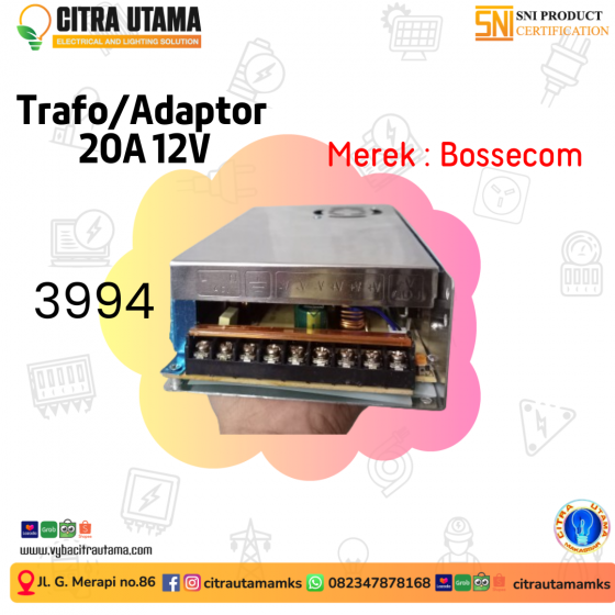 Memberikan tenaga ekstra dengan adaptor 20A 12V Digunakan untuk memberikan daya perangkat rumah tangga yang beroperasi pada tegangan 12V, seperti lampu, kipas, atau perangkat lainnya.